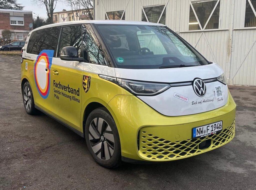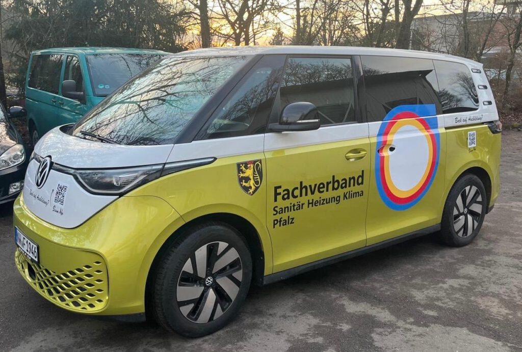 Der Fachverband SHK Pfalz ist nun ganz mobil unterwegs. Angeschafft wurde ein ID Buzz PRO, der durch seine Farbe und Bedruckung sicherlich ins Auge stechen wird. Er soll vielfältig eingesetzt werden. Als Transportfahrzeug für den Fachverband, sowohl auch als Ausstellungsfahrzeug auf Messen. Auch die Jungheizer sollen das Fahrzeug für Ihre Präsentationen verwenden dürfen. Das Geheimnis was sich im Inneren befindet, wird noch gelüftet.